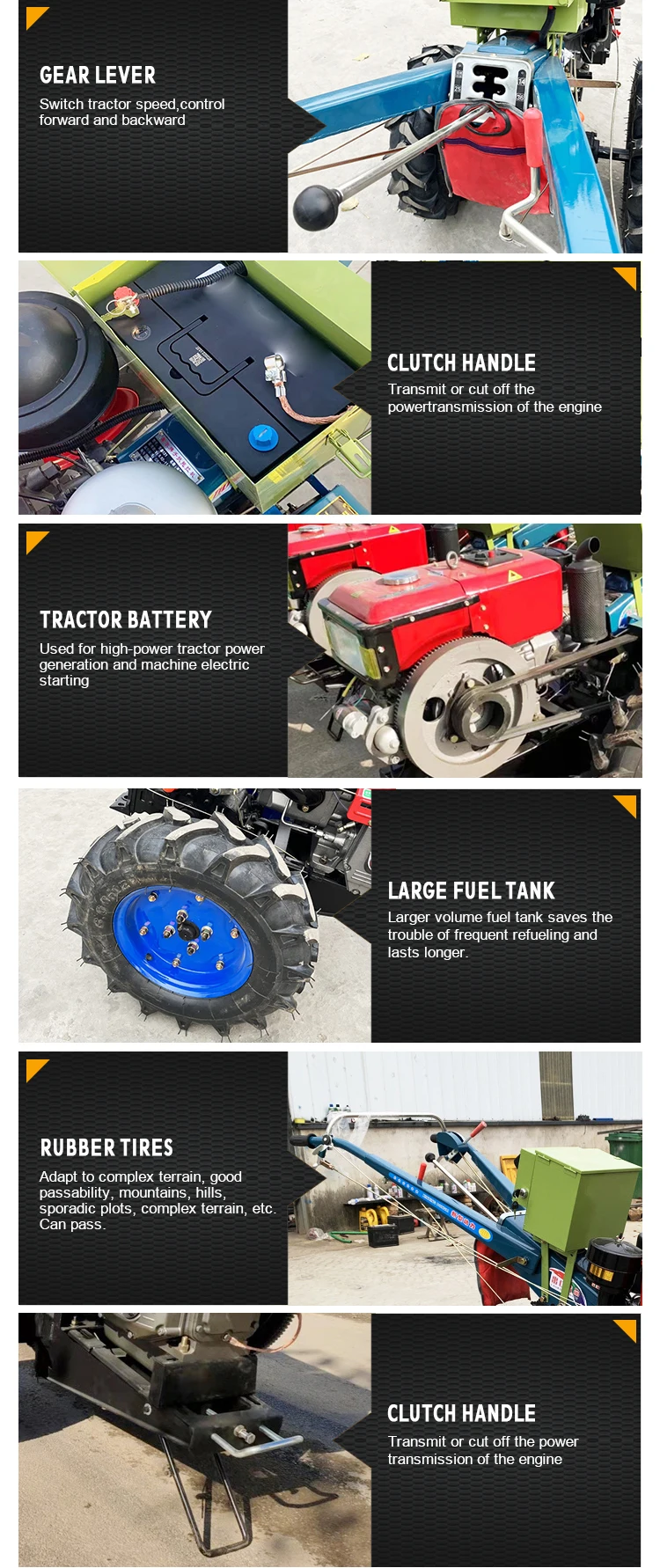 - Type : Tracteur à guidage manuel (Walking Tractor).